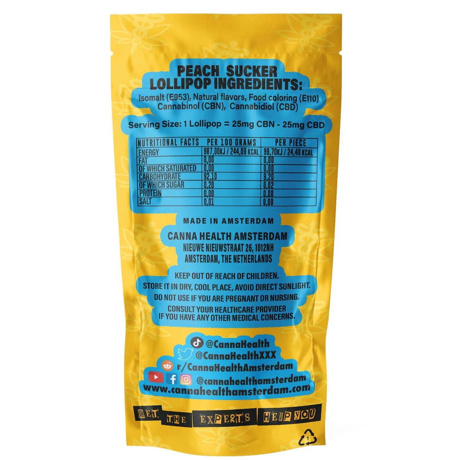 Canna Health Amsterdam ist Ihre Anlaufstelle für reine, hochwertige CBD- und CBN-Produkte. Wir legen die Messlatte hoch, denn wir sind fest entschlossen, erstklassige Zutaten zu verwenden. Erwarten Sie die beste Qualität von CBD und CBN in jedem köstlichen Lutscher.