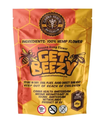Erleben Sie das tropische Glück von THCp Get Beezy: Mango Shoreline von Canna Health Amsterdam, ein 20g Beutel mit erstklassigem, THCp-infundiertem, THC-freiem Hanfblüten.
