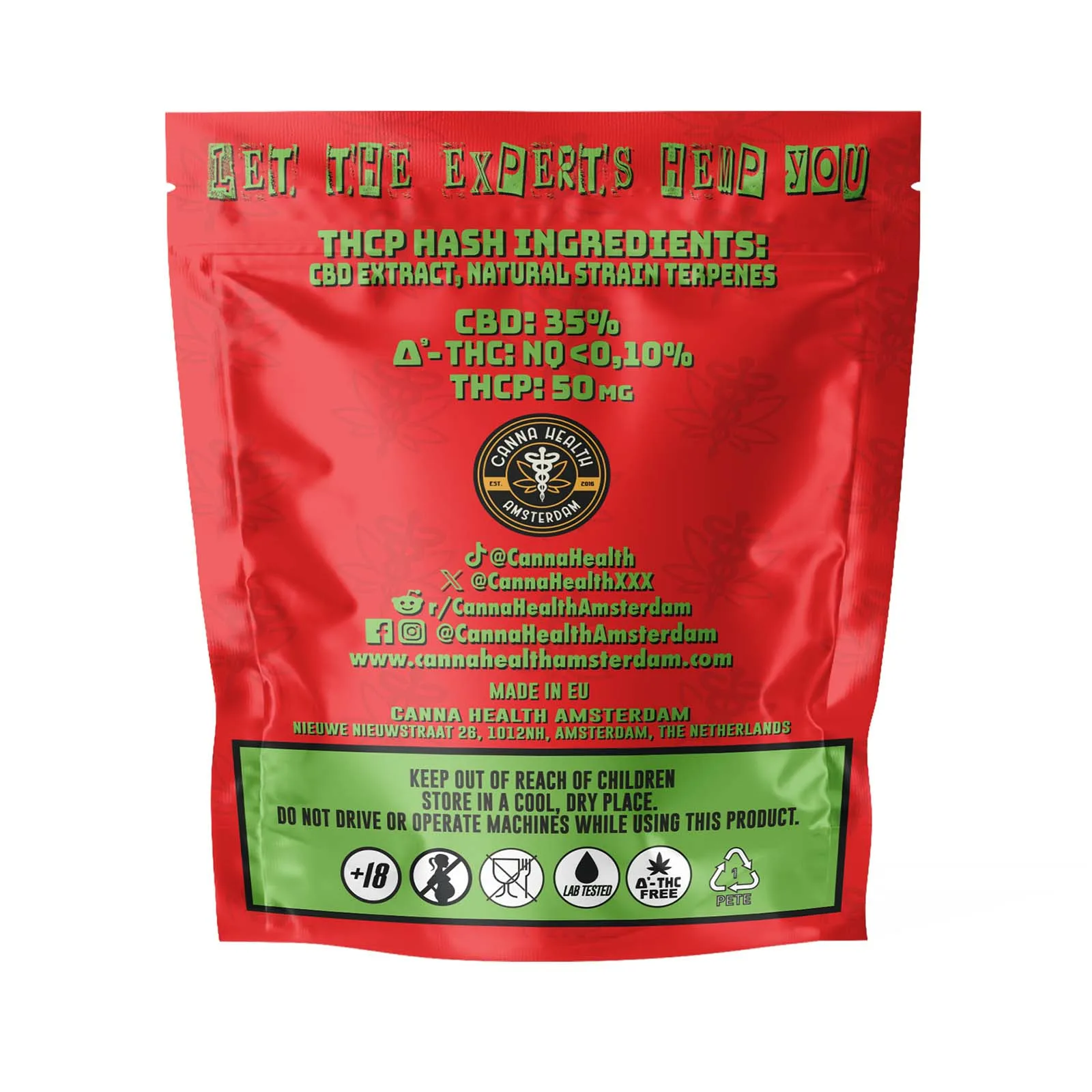 Canna Health Amsterdam THCP Hash besteht aus 50mg THCP (Tetrahydrocannabiphorol) und 35% CBD.